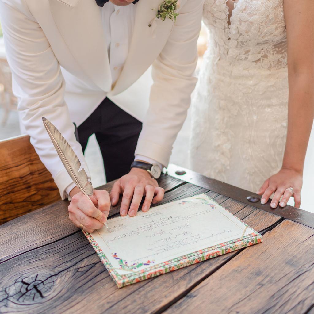 We also include our signature symbolic ceremony certificate to sign together as testimony to the vows you make on your wedding day.